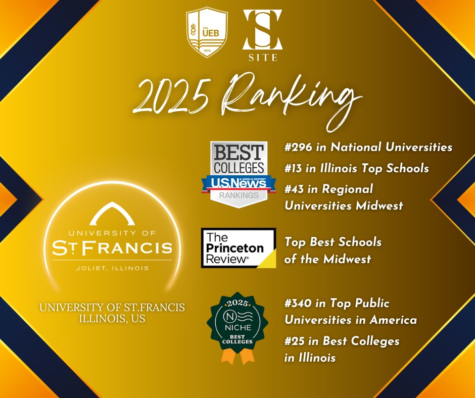 Đại học St. Francis tại Joliet, Illinois, Mỹ - Đối tác của Viện Đào tạo Quốc tế, Trường Đại học Kinh tế - ĐHQGHN (UEB-SITE) tự hào công bố thứ hạng ấn tượng trong các bảng xếp hạng năm 2025 của các tổ chức đánh giá giáo dục danh tiếng là U.S. News & World Report, The Princeton Review và Niche.