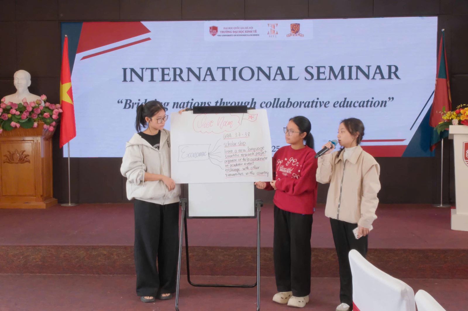 Trong bối cảnh giáo dục đại học đang đẩy mạnh xu hướng quốc tế hóa, việc mở rộng hợp tác đào tạo và tạo điều kiện cho sinh viên tham gia các chương trình học tập xuyên biên giới ngày càng đóng vai trò quan trọng. Viện Đào tạo Quốc tế, Trường Đại học Kinh tế – ĐHQGHN (UEB-SITE) đã phối hợp với Đại học Trung Văn Hồng Kông – Thâm Quyến (Chinese University of Hongkong, CUHK-Shenzhen) tổ chức chương trình giao lưu học thuật quốc tế với chủ đề “Bridging Nations through Collaborative Education”.