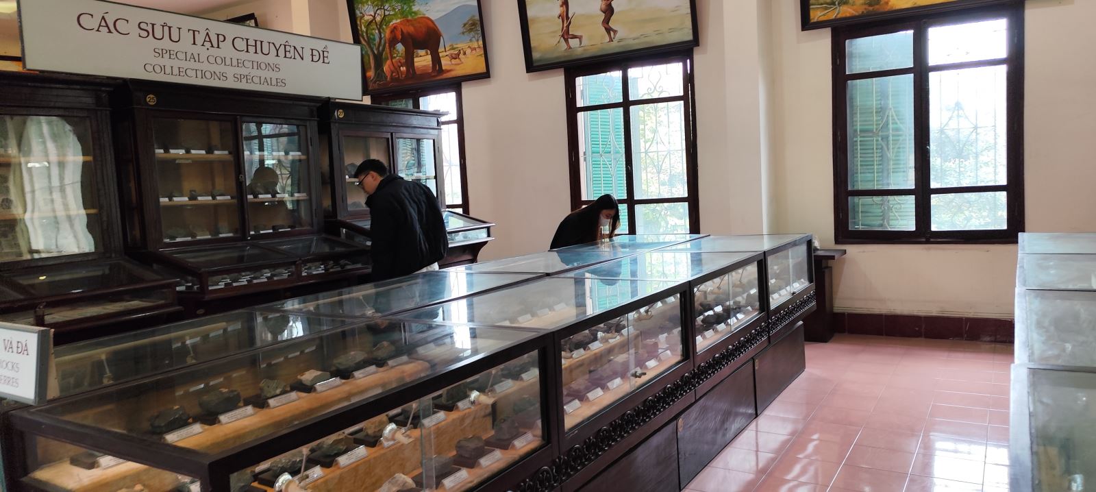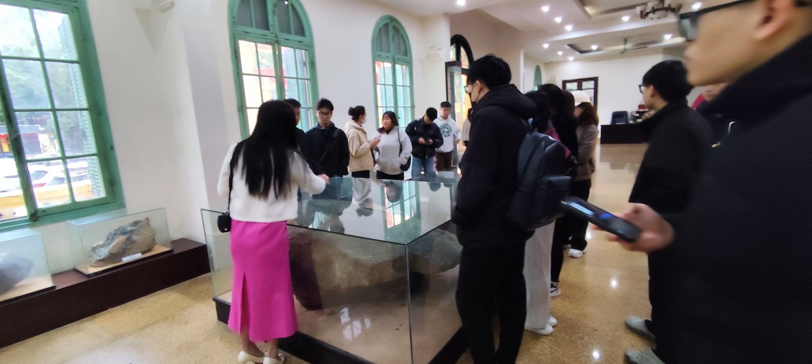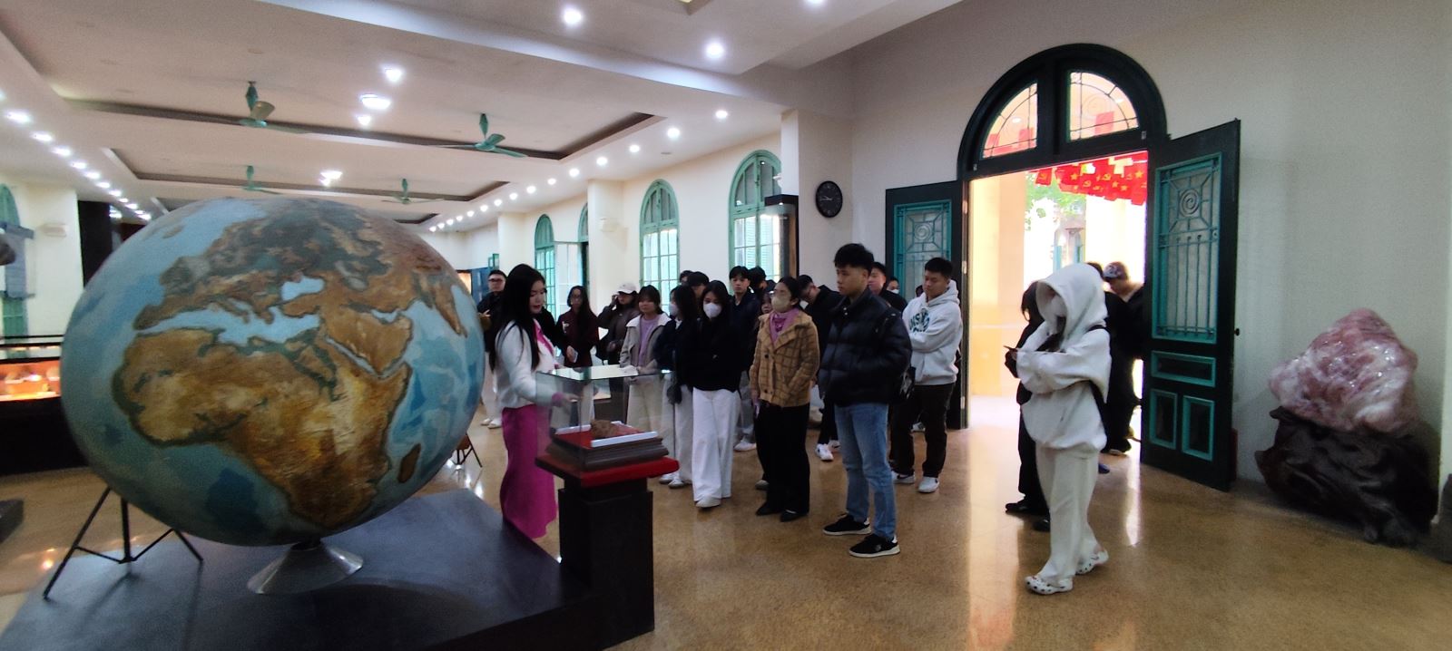 Ngay từ khi đặt chân tới bảo tàng, không gian học tập đã mở ra theo một cách hoàn toàn khác biệt. Những bộ sưu tập khoáng vật, mẫu trầm tích, hóa thạch và mô hình địa chất không chỉ mang giá trị trưng bày mà còn trở thành “giáo trình sống”, giúp sinh viên hình dung rõ nét hơn về quá trình hình thành, vận động và tiến hóa của Trái Đất. Thông qua việc quan sát trực tiếp các loại đá được phân bố theo niên đại địa chất, sinh viên có cơ hội củng cố kiến thức về dòng thời gian địa chất, đồng thời hiểu sâu hơn về mối quan hệ giữa các biến đổi tự nhiên và sự phát triển của sự sống.